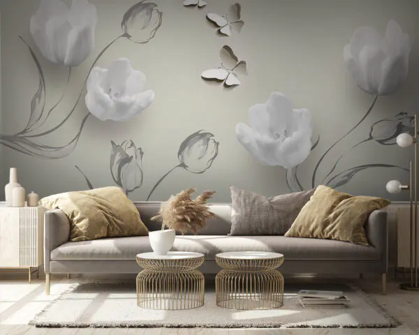 Wall murals White flowers and butterflies in a room