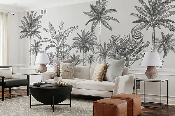 Wall mural Group of palm trees against a sunset
