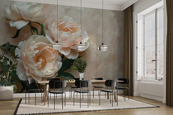 Wall mural Group of white flowers with brown leaves