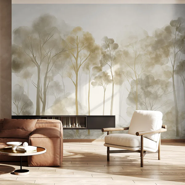 Wall mural Group of trees with birds flying in the air