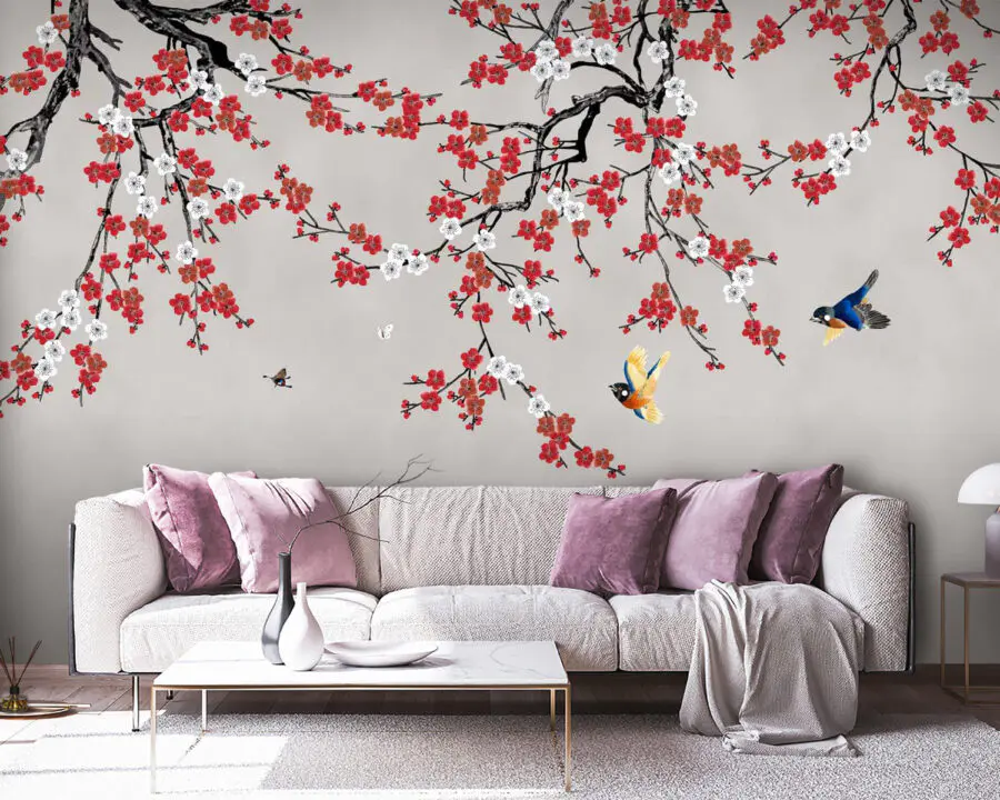 Transform your space with this enchanting wall mural featuring vibrant birds soaring amid delicate cherry blossoms. Imagine waking up each day surrounded by the beauty of nature, as these feathered friends glide effortlessly through the air. The soft backdrop contrasts perfectly with bold hues, bringing life and energy into any room. It’s like having a tiny piece of spring right on your wall year-round. Picture cozy evenings where the mural serves as a stunning backdrop for gatherings or serene mornings with a cup of coffee in hand. This mural doesn’t just decorate; it inspires stories, dreams, and good vibes. Whether it’s a bedroom, living room, or even a playful nook, it invites warmth and cheer. Wouldn’t it be great to just sit back and soak in the blissful sight?