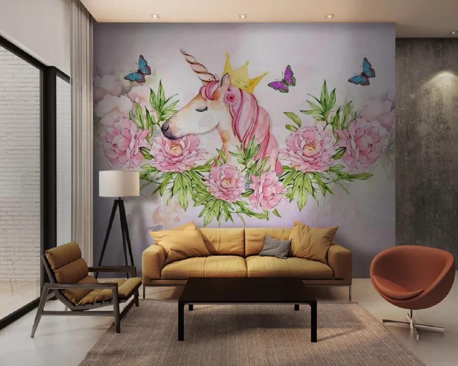 Transform a child’s space into a magical kingdom with this enchanting wall mural featuring a unicorn crowned and surrounded by butterflies. Imagine the delight in your daughter’s eyes as she walks into her room and is greeted by this whimsical scene. It’s like having a fairy tale come to life right on the walls! The soft colors and charming design create a serene yet vibrant atmosphere. Just picture cozy storytime moments or playdates where imaginations can soar—no need for sparkly shoes when this mural brings all the magic! Perfect for any little dreamer.