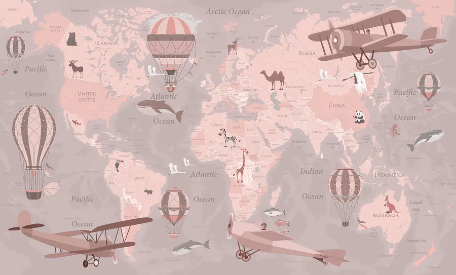 Hey there! So, picture this: a dreamy world map mural that’s perfect for your little explorer’s room. It’s got vintage airplanes and whimsical hot air balloons floating about, giving the whole thing a playful, adventure-ready vibe. Imagine your kiddo pointing at the different animals scattered across the continents, dreaming of far-off places like Africa with its giraffes or Asia with its pandas. It’s not just a map; it’s a whole world of imagination plastered on the wall, turning any boring space into a lively adventure hub. Perfect for daydreaming, story time, and planning those epic make-believe journeys. Plus, it’s a fab way to sneak a bit of learning into their day without it feeling, you know, like school. Great for sparking curiosity—and who knows, maybe inspiring the next big explorer!