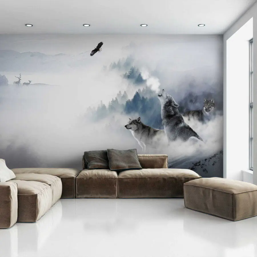Transform your space with this captivating mural featuring a wolf standing majestically in the snow. Imagine walking into a room where nature’s untamed spirit envelops you—this mural does just that! With its gentle hues and serene backdrop of frosty landscapes, it invites daydreams of snowy walks and crisp air. Picture curling up with a good book, the murmur of the wild just a glance away. It’s like having a piece of the wilderness right in your home, whispering secrets of the great outdoors. It’s eye-catching and just might inspire a bit of wolf-whispering of your own! Perfect for nature lovers or anyone wanting to add a wild touch to their decor.