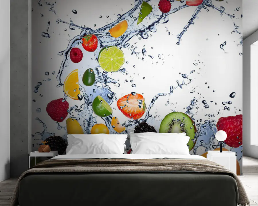 Brighten up any space with the vibrant “Fruit Splashing into Water” mural. This lively design is like a fruit party that just jumped out of the kitchen and splashed onto your wall! Imagine walking into a room and feeling that instant burst of freshness—it’s practically like biting into a juicy slice of watermelon on a hot day. The playful splashes of water and colorful fruits create a fun, carefree vibe that could even make a Monday morning feel like a sunny Saturday. Perfect for kitchens, dining areas, or any spot needing a little pep. It’s like a mini vacation for the eyes! Plus, who doesn’t love a reminder to eat more fruit? With this mural, every glance feels like a refreshing moment. Seriously, it’s hard not to smile!