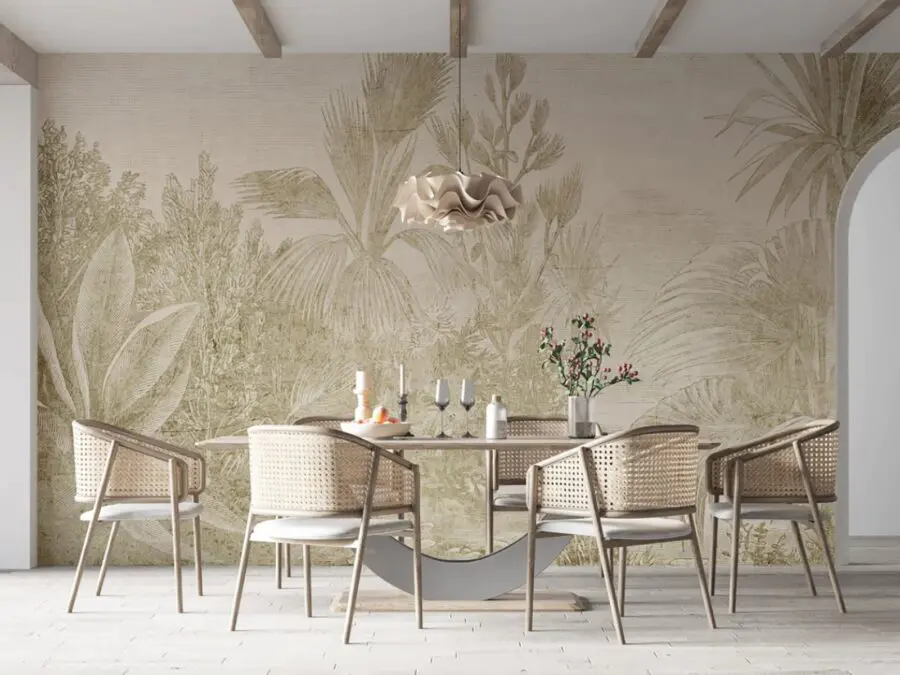 Transform any room into a serene escape with this stunning wall mural featuring elegant plant designs. Imagine stepping into a dreamy jungle right from your living room—it’s like a mini-vacation without the sunscreen! The soft, neutral tones create a calming ambience, perfect for unwinding after a long day. This mural brings nature indoors, adding a touch of warmth and a breath of fresh air. Picture a cozy reading nook surrounded by leafy greens, where every page feels a little more magical. Instant vibe boost? Oh, absolutely! Get ready to invite some peace and tranquility into your space.