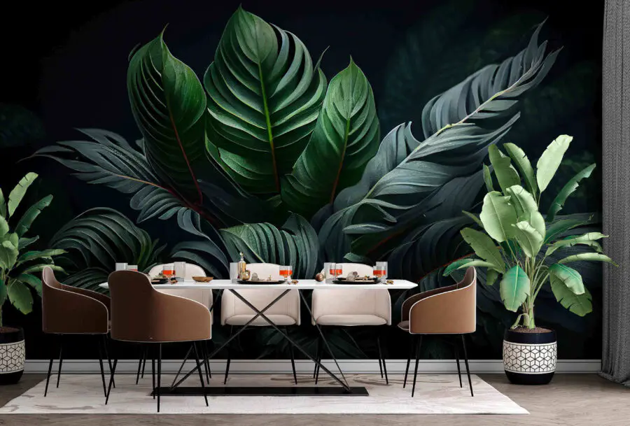 Transform a dull wall into a lush escape with this stunning mural of green foliage and dim light. Imagine stepping into a serene jungle, where the deepest greens whisper the secrets of nature. It’s like inviting a peaceful forest right into your home—all without the outdoor bugs! Perfect for a cozy reading nook or that one wall that needs a little love. Guests might even forget they’re indoors—it’s that immersive. Hang it up, kick back, and let those vibrant leaves inspire your next adventure or maybe just your next cup of tea.