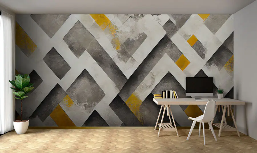 Transform any space with this stunning wall mural featuring a dynamic geometric pattern that adds a touch of flair. Picture this: a cozy room where straight lines and vibrant angles meet, creating a soothing yet energizing vibe. The earthy tones blend beautifully, striking a balance that feels both fresh and timeless. It’s perfect for making a statement without shouting for attention—like that quiet friend who somehow has the most interesting stories. Imagine hosting a gathering with friends, and everyone can’t help but admire the walls. It just elevates the whole space, turning any room into a conversation starter. No need for fancy decor—this mural effortlessly sets the stage for life’s little moments.