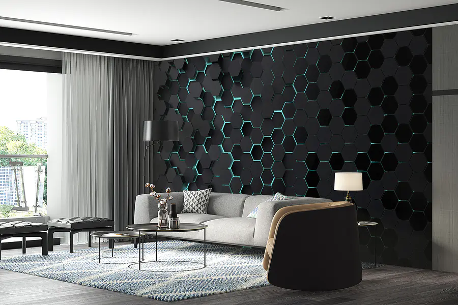Check out “Black and Blue Hexagons,” the perfect wall mural for giving your space a modern, edgy vibe. This geometric pattern seems to pop right out at you–almost like it’s 3D! Imagine this in your living room or office; it’s like your wall is alive with movement and depth. Plus, those blue accents? They add just the right amount of color without going overboard. It makes you feel like you’re staring into an ultra-cool, futuristic beehive. Give your walls a makeover that’s both sleek and a bit adventurous with this bold design.