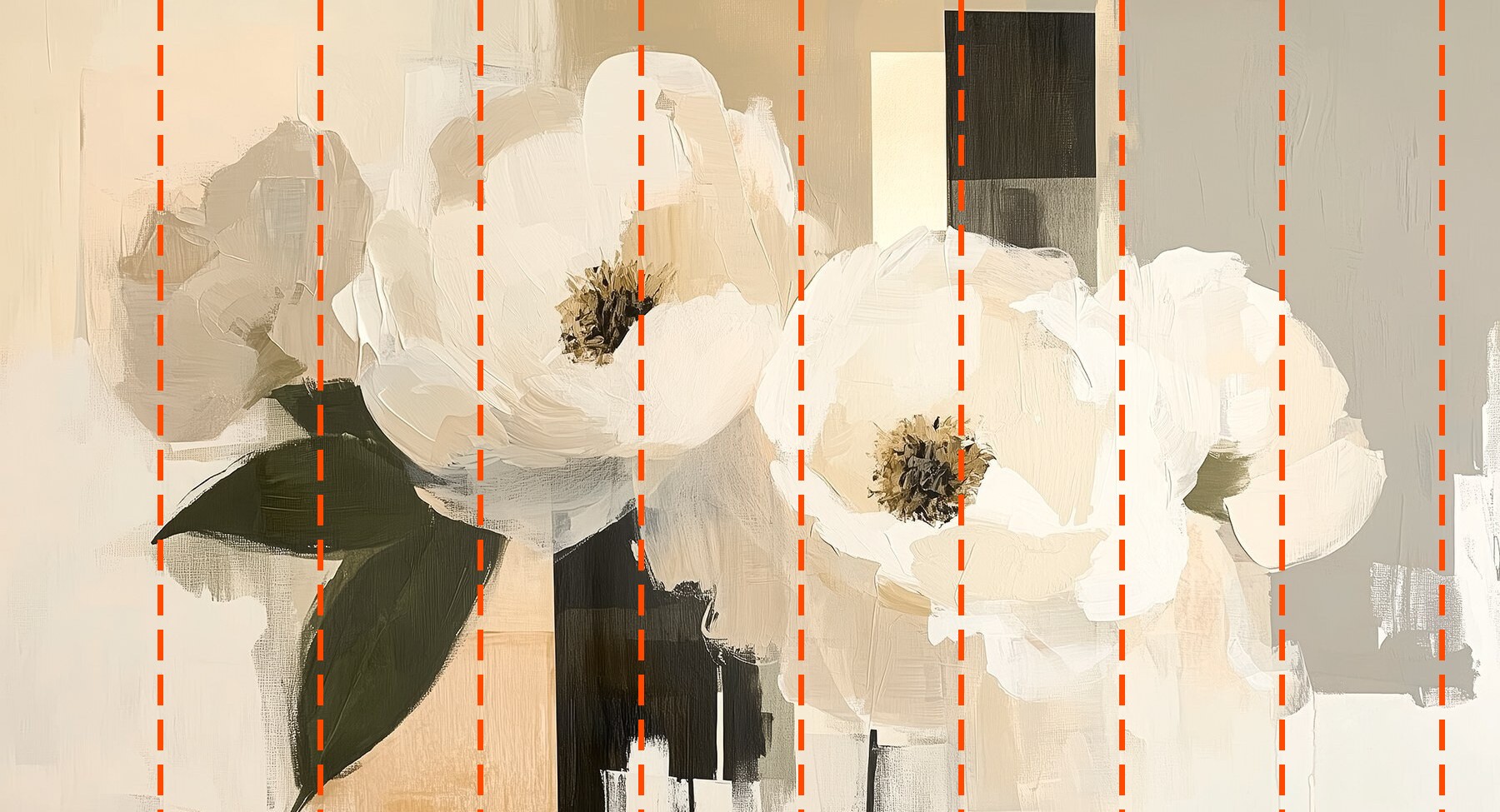 Your wallpaper will be prepared according to the dimensions you provided during the ordering process. The canvas will be divided into convenient sections, each up to 50 cm in width.
