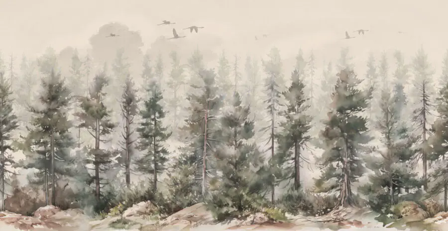 Imagine stepping into a tranquil forest every time you glance at your wall. This watercolor mural, with its dreamy trees and soft, muted colors, brings the serenity of nature right into your home. It’s like hanging a piece of calmness on your wall, letting the outdoors blend beautifully with your decor. Picture cozy evenings, curled up with a book, magical light filtering through those trees, and the distant sound of birds—ah, bliss! Perfect for a living room or a cozy reading nook, this mural makes your space feel alive, refreshing, and just a tad enchanted.