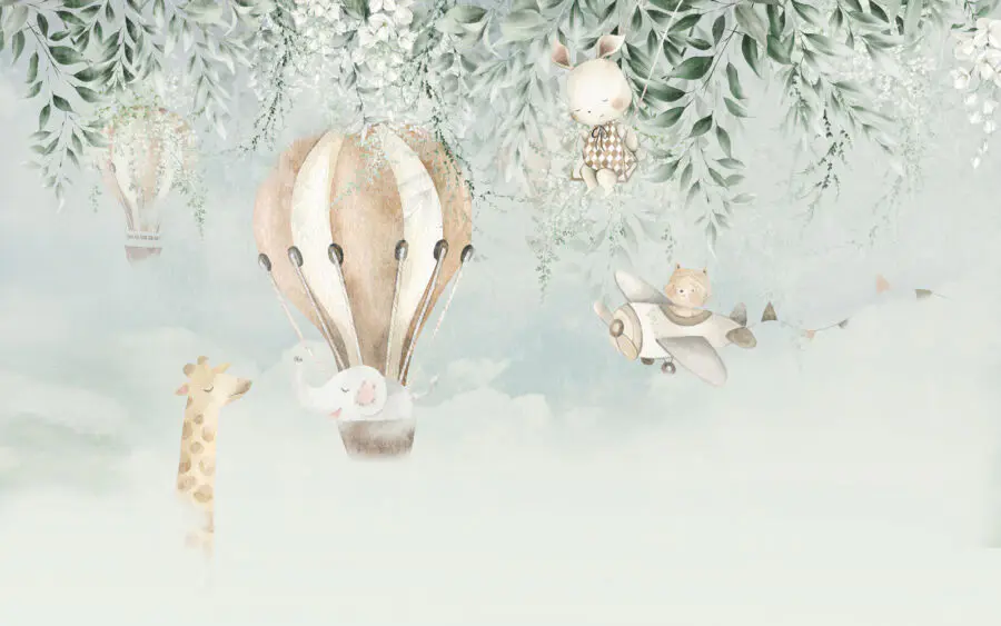 Ever dreamt of bringing a whimsical, dreamy scene to your child’s bedroom? This “Wall Murals Painting of a rabbit on a swing” is sure to do the trick. Imagine your little one’s eyes lighting up, spotting the adorable rabbit gently swaying among soft greens and charming little details. There’s even a hot air balloon and other delightful characters!