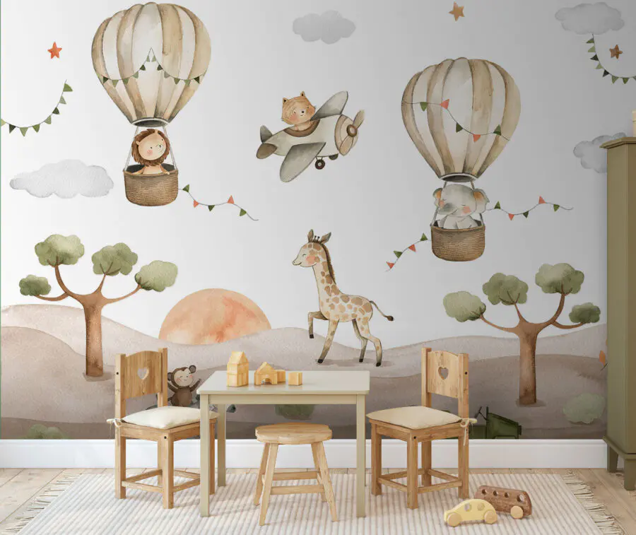 Alright, check this out — a wall mural called “Monkey Riding a Zebra”! Perfect for your little explorer’s room, whether they’ve got a love for animals or just wild imagination. Picture this: a monkey joyfully riding a zebra across a whimsical landscape that looks like something straight out of a bedtime story. Hot air balloons, a playful giraffe, and a friendly jeep complete this adorable scene. Imagine your child waking up to this every morning, feeling like they’re on an endless adventure. It’s not just wall art, it’s a spark for storytelling and daydreaming. How cool is that? This mural’s a hit for any kid’s room, making their space fun and so very unique. Who knew decorating could be this delightful?