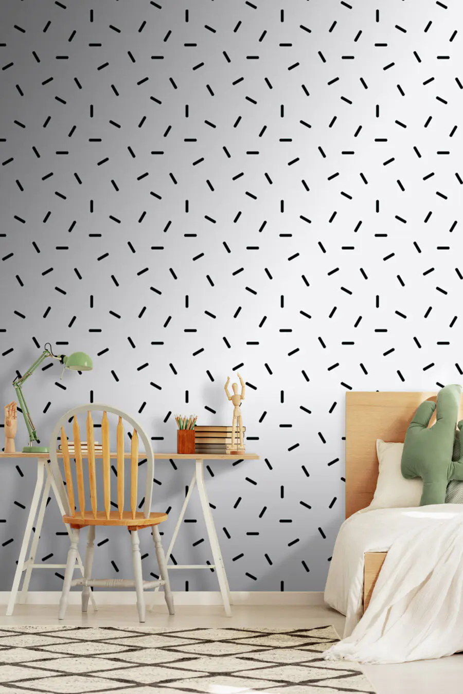 Ever wanted your walls to be like a stylish hug for your space? Meet the “Black Lines on a White Background” wall mural. It’s like the little black dress of home decor—timeless, classy, but with that modern edge. Just imagine walking into a room and feeling that subtle sophistication wrap around you. It’s versatile too, fitting right in whether your style is minimalistic or a bit more ‘eclectic chic.’ Those clean, geometric lines have a way of making any room feel bigger and brighter, almost like it’s breathing in fresh air. Picture hosting a dinner party with this as your backdrop—it’s bound to spark conversation. Plus, there’s something calming in its repetitive, yet varied pattern. It’s simple but makes a statement. Perfect for anyone who loves a touch of understated elegance in their home.