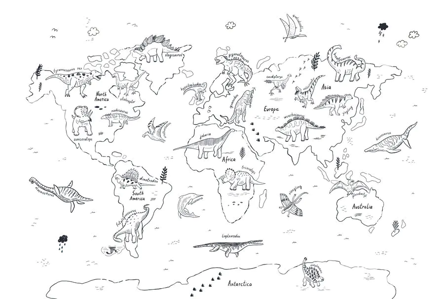 Imagine your kid’s room transformed into a prehistoric wonderland with this fantastic dinosaur wall mural! “Drawing of a Dinosaur” isn’t just a mural; it’s a journey back in time. This playful design maps out the world where massive, majestic dinosaurs once roamed. The hand-drawn style adds a whimsical touch, making it look like it’s straight out of a child’s adventure storybook.