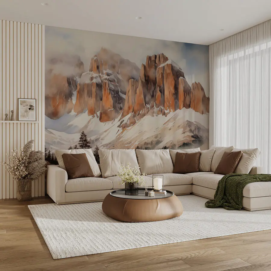 Transform any room with this stunning wall mural of a mountain range shrouded in soft clouds and dotted with resilient trees. Just picture it—waking up and being greeted by those majestic peaks every morning; it’s like a mini-vacation right at home. The earthy colors bring a cozy vibe that makes spaces feel warm and inviting. Whether it’s for a living room or a peaceful bedroom retreat, this mural whispers tales of adventure and serenity. Plus, it’s a great conversation starter for when friends come over. Who wouldn’t want to chat about exploring those grand vistas?