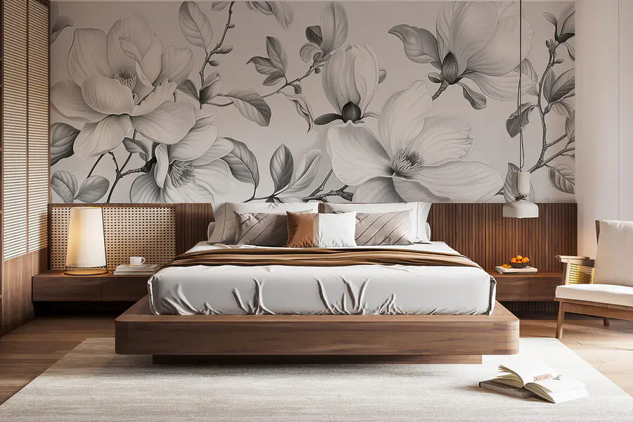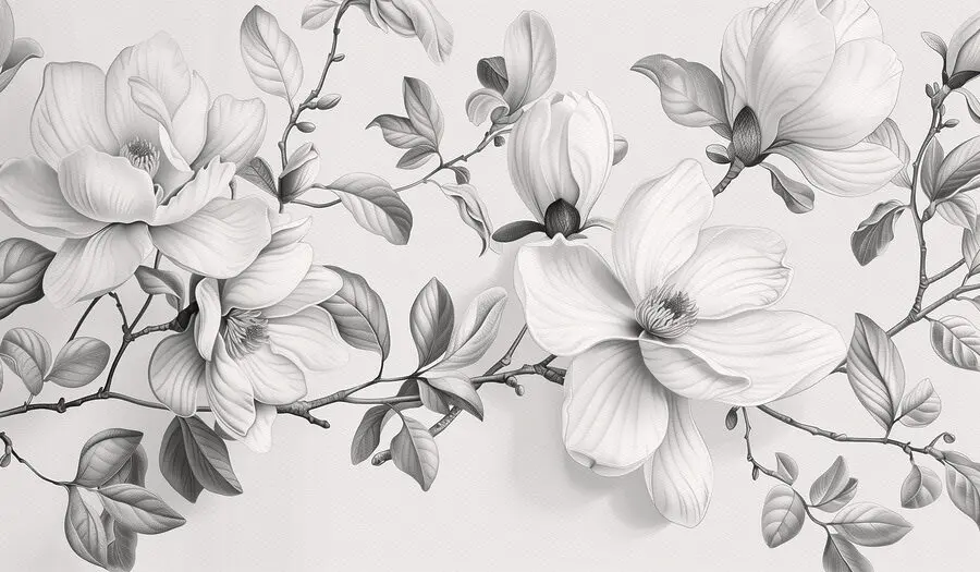 Transform a dull wall into a piece of art with this elegant monochrome floral mural. Imagine stepping into a serene garden, where each petal softly whispers elegance and charm. The intricate design brings a calming vibe, perfect for any space needing a gentle touch of nature. Picture friends gathering, admiring this stunning backdrop, maybe even spilling a drink in excitement—whoops! But don’t worry, it’s all about the experience, right? This mural captures the essence of tranquility while effortlessly blending with any decor style. Bring a breath of fresh air home!