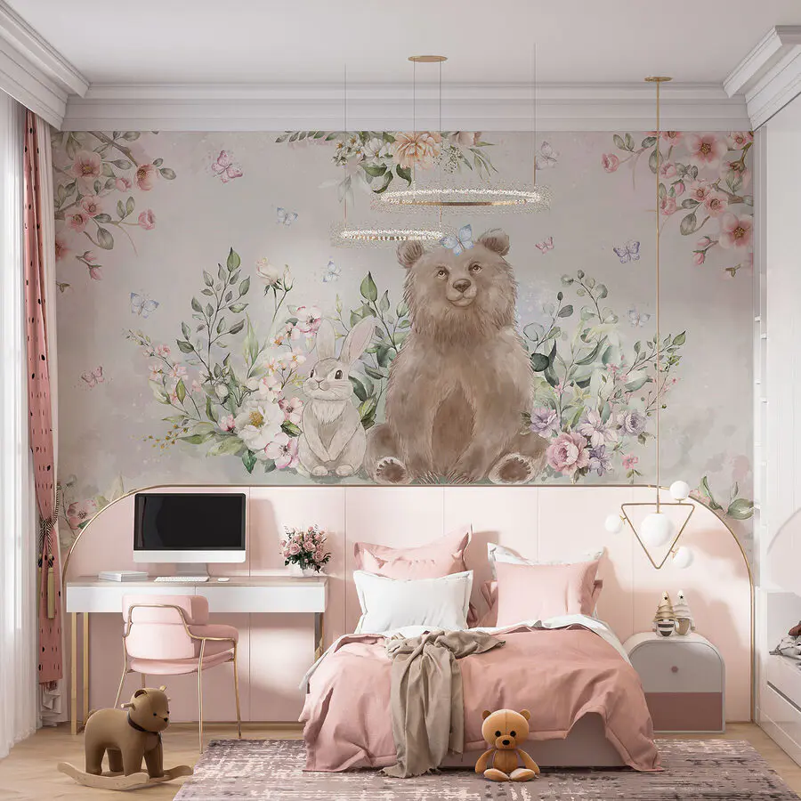 Imagine walking into a room and being warmly greeted by a cheerful little bear and a curious bunny surrounded by whimsical flowers and butterflies. That’s the magic of the “Wall Murals w01491” – it instantly brightens any space! Perfect for animal lovers or anyone who wants a touch of nature indoors, this mural doesn’t just decorate a room; it tells a story. Picture morning coffee with this gentle, pastel backdrop… blissful moments amidst blooms and charming creatures – it’s like stepping into a gentle forest tale. Install it in a nursery, living room, or even your creative workspace for a daily dose of joy and tranquility!