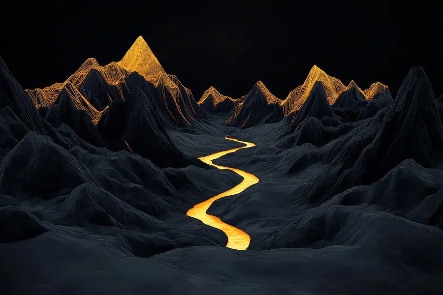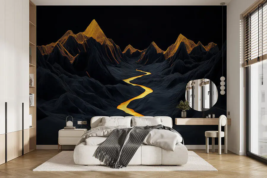 Transform any space into a serene escape with this stunning mural depicting a river winding through majestic mountains. Imagine sipping a warm drink while gazing at the golden river glimmering against dark, dramatic peaks—it’s like bringing nature right into your living room. Perfect for anyone dreaming of adventure or just needing a calm corner to unwind. Whether it’s the focal point of the room or a subtle backdrop for daily life, this mural adds a splash of the wild outdoors without any hiking gear required. Just picture it: cozy evenings, soft light, and that gorgeous view every single day.