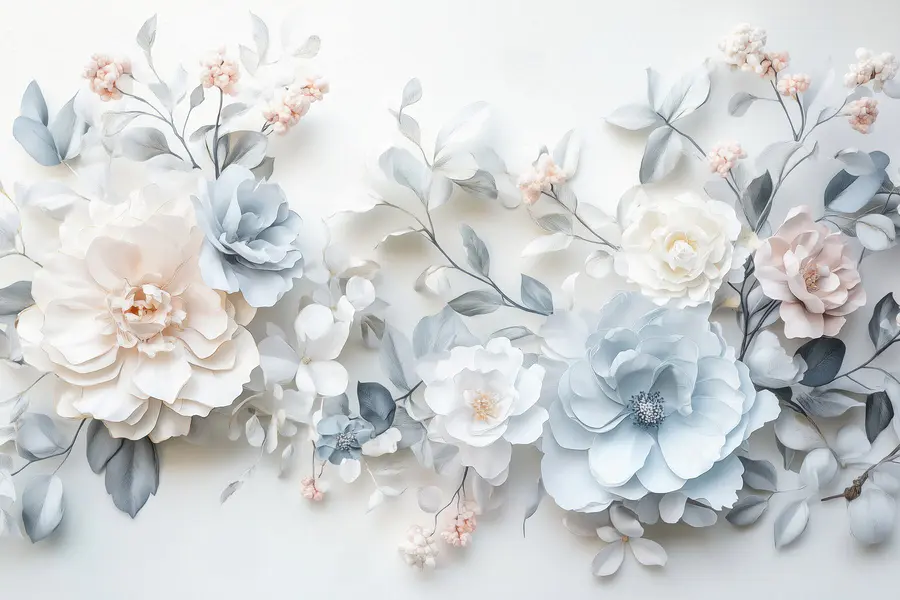 Transform any space with this stunning mural featuring a vibrant group of flowers against a crisp white background. It’s like bringing a garden indoors, without worrying about watering them—talk about low maintenance! Imagine stepping into a room where soft petals and delicate leaves seem to dance together; it just adds that sprinkle of charm. Perfect for sprucing up a cozy nook or making a statement in a living room, this mural can spark joy, inspire relaxation, or even ignite conversations over coffee. It’s more than just decor; it’s a mood. Dreams of spring and blissful afternoons await with just one gaze at this floral masterpiece. Perfectly delightful!