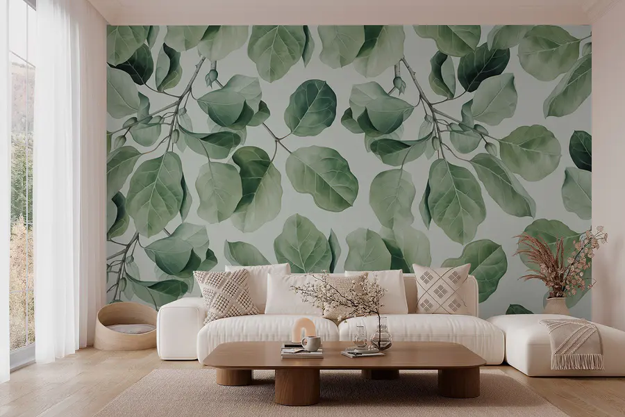 Transform any space into a serene retreat with this lush green leaf mural. Imagine stepping into a tranquil forest—this design captures that feeling perfectly. The soft, leafy pattern invites a breath of fresh air right into your home, making you want to kick off your shoes and relax. It’s like nature decided to be your wallpaper, wrapping you in warmth and calmness. Perfect for a cozy living room or a peaceful office, this mural elevates the vibe without being too fussy. Who needs a vacation when you can have a slice of nature at home?
