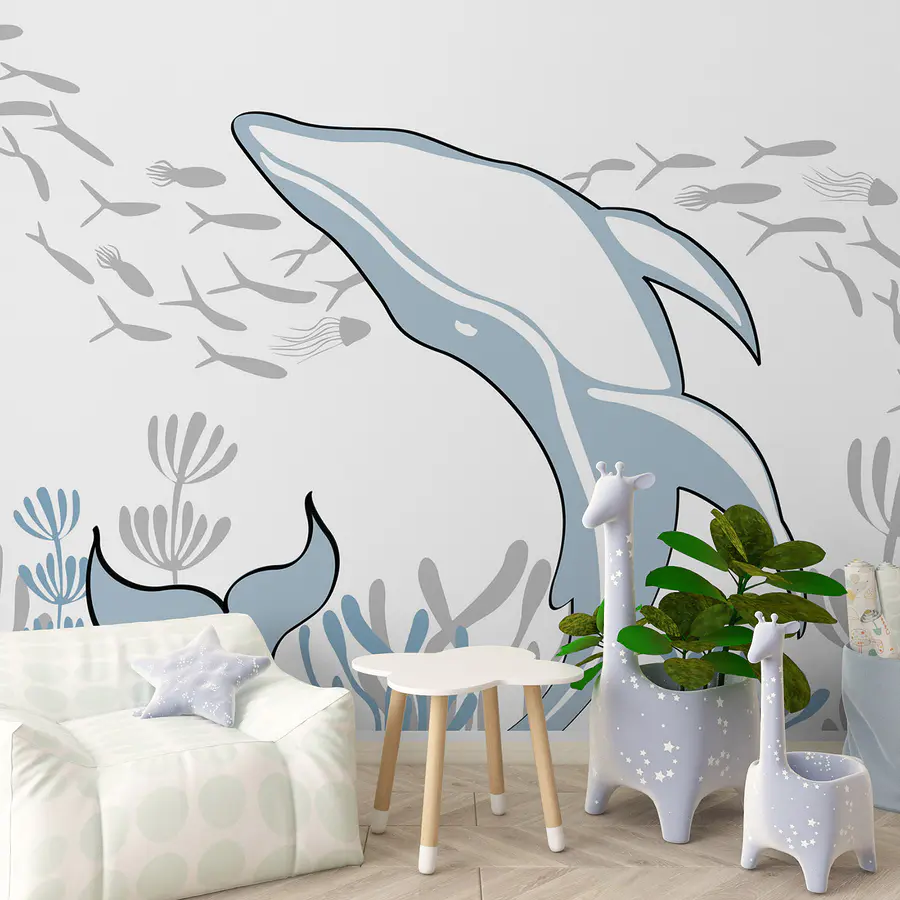 Dive into a world of wonder with this mural featuring a playful dolphin swimming in the ocean. Imagine transforming a room into an underwater oasis, where each glance at the mural can whisk you away to sunlit waves and sea breezes. The soothing colors create a relaxed vibe—perfect for a cozy reading nook or a vibrant playroom. Picture kids giggling as they spot fish friends flitting about. Just think, every day could feel like a beach day. Let the warmth of the ocean wash over your space, making it feel like a vacation at home!