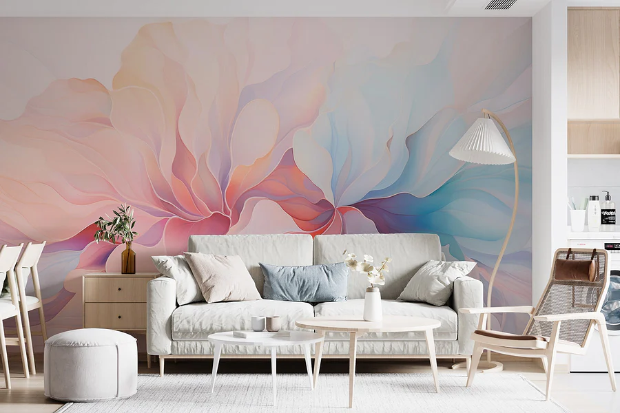 Transform your space with the “Soft Hues in Delicate Harmony” mural, where colors dance like a gentle breeze on a spring morning. Imagine stepping into a room that feels like a soft embrace—those muted pastel blooms ready to wrap you in tranquility. Perfect for a cozy reading nook or a serene office corner, this mural adds just the right touch of whimsy without going overboard. Friends might lean in, admiring the way the light plays off the layers, sparking conversations that feel as light as the mural itself. Who knew decorating could feel so soothing? It’s like bringing a piece of nature indoors, minus the pollen!