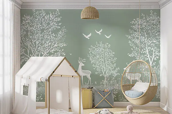 Wall murals White leaves on a light green background
